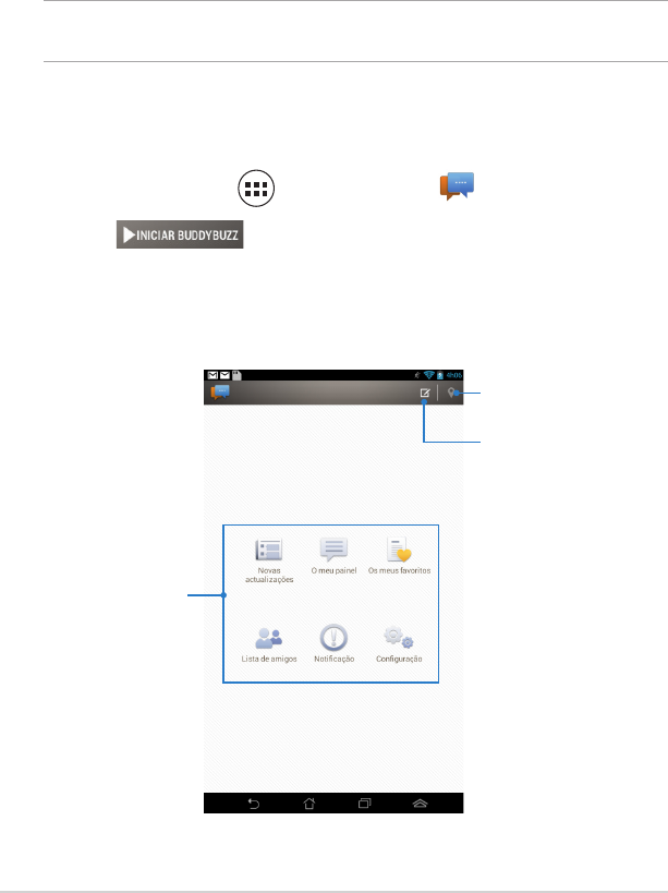 2. Toque em para abrir o ecrã principal do BuddyBuzz.